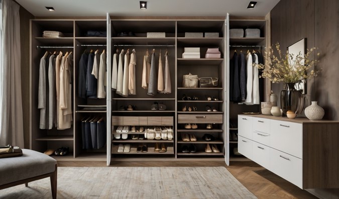 By grouping by length, you clear up floor space under the “Short Hang” sections for modular drawers or shoe racks, creating a fully integrated system.